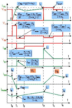 因此,流經(jīng)NS1的電流有助于給內(nèi)部線圈LB放電,同時交流電源電壓給線圈Np 施加偏壓。因為根據(jù)下面公式計算的反射電壓VNS1的原因,流經(jīng)D1 的電流IRM 降至0 A。