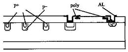 這種結(jié)構(gòu)在版圖設(shè)計(jì)上通過增加鋁場(chǎng)板的長(zhǎng)度來實(shí)現(xiàn),比較容易控制,使得金屬覆蓋過離主結(jié)最近的場(chǎng)限環(huán),它不僅起到了場(chǎng)板和場(chǎng)限環(huán)的效果,又避免了傳統(tǒng)結(jié)構(gòu)在場(chǎng)板的邊緣產(chǎn)生新的電場(chǎng)峰值,避免了電壓在場(chǎng)板邊緣和場(chǎng)限環(huán)之間的提前擊穿。