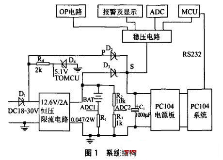 環(huán)境測試儀是指能夠測量溫度、濕度、壓力、風速等環(huán)境參數(shù)的儀器。為了滿足各種復雜地理環(huán)境下的測試需求,測試儀迫切需要小型化和便攜式。為了保持與現(xiàn)有軟件的最大兼容性, 我們選用PC104 的系統(tǒng)架構設計了便攜式的測試儀。PC104 是IBM PC 兼容工業(yè)標準的架構體系。PC104 主板對電源系統(tǒng)要求較高, 設計選用工業(yè)級的PC104 電源板,此電源板支持寬范圍輸入( DC8~ 36 V) , 效率高達96 % 。為了滿足便攜性, 系統(tǒng)必須支持電池組供電( 鋰電池組或鉛酸蓄電池組等) , 由于鋰電池組具有單節(jié)電池標稱電壓高、自放電率低、質(zhì)量能量密度和體積能量密度高、沒有記憶效應等優(yōu)點,本系統(tǒng)選用鋰電池組供電。本文主要討論了系統(tǒng)供電電路及電池組充電電路的設計。