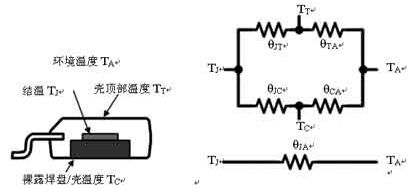 通過二極管的壓降和通過的電流,可以計(jì)算功耗;通過二極管的壓降可以查到結(jié)溫,根據(jù)功耗、結(jié)溫和器件裸露銅皮或與芯片內(nèi)部襯底相連的管腳的溫度,可以計(jì)算得到RθJC或RθJL。根據(jù)功耗、結(jié)溫和環(huán)境溫度,還可以計(jì)算得到RθJA。