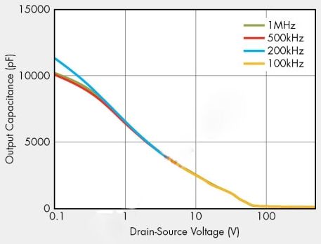 過去,許多設計人員都使用粗略假設來提供等效輸出電容值,因為輸出電容通常都指定為25V漏源電壓。不過,傳統(tǒng)的等效輸出電容值在實際應用中卻沒有多大幫助,因為它隨漏源電壓變化,并且在開關(guān)導通/關(guān)斷期間不能提供準確的儲能信息。在功率轉(zhuǎn)換器工作電壓下,新定義的輸出電容提供等效的儲能,能夠?qū)崿F(xiàn)更優(yōu)化的功率轉(zhuǎn)換器設計。