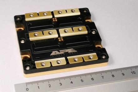 之前羅姆開發(fā)的超低電阻(約2mΩ?cm2)SiC溝槽MOSFET可通過單片承受100A級(jí)的電流。而此次,羅姆進(jìn)一步成功的降低了MOSFET的門極電容,開關(guān)速度與現(xiàn)有的SiC-DMOS相比可提高50%,與羅姆以往的SiC溝槽MOS相比也提高了30%。但是,傳統(tǒng)的模塊,為了元器件的散熱,確保元器件的工作溫度,需要加大模塊面積,因此往往導(dǎo)致模塊的寄生電感增大。因此,即使搭載SiC溝槽MOS,由于模塊本身的限制也無法有效發(fā)揮其特點(diǎn)。而此次APEI開發(fā)出了通過將模塊的面積小型化、進(jìn)一步優(yōu)化布局、大幅降低了寄生電感的模塊。另外,這種模塊上搭載溝槽MOS可承受1000A級(jí)水平的大電流,與傳統(tǒng)的Si-IGBT模塊相比,可以減少一半導(dǎo)通電阻。此外,實(shí)現(xiàn)了開關(guān)時(shí)間僅需數(shù)十納秒的超高速工作,與Si-IGBT相比成功將開關(guān)損耗降低到了1/3。不僅如此,由于所使用的材料變更為高性能材料,因此模塊的面積減少到30%,并同時(shí)實(shí)現(xiàn)了Si-IGBT不可能實(shí)現(xiàn)的高溫(250℃)驅(qū)動(dòng)。而且,根據(jù)端子的連接方法,可按半橋、全橋、串聯(lián)進(jìn)行選用。另外,還能搭載羅姆開發(fā)的所有的SiC器件,可進(jìn)行滿足客戶規(guī)格要求的設(shè)計(jì)。
