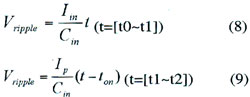 可以推導(dǎo)輸入電流與電容紋波電壓的關(guān)系為: