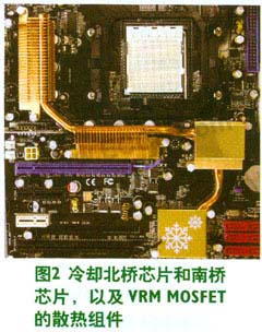 為了應對未來的需求,出現(xiàn)了雙面封裝技術(shù),可讓主板設計師對高性能應用的MOSFET進行散熱處理,迫使MOSFET廠商成為總體解決方案的供應商。過去,臺式電腦在處理器及北橋芯片和南橋芯片上使用散熱片。雖然這在先前的主板設計中不常見(主要是成本原因),但對MOSFET進行散熱已越來越常見。高級主板市場已經(jīng)開始出現(xiàn)將北橋芯片和南橋芯片上的導熱管連接到VRM的MOSFET散熱片上的散熱組件(見圖2)。