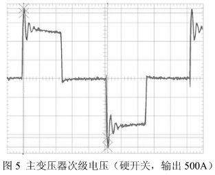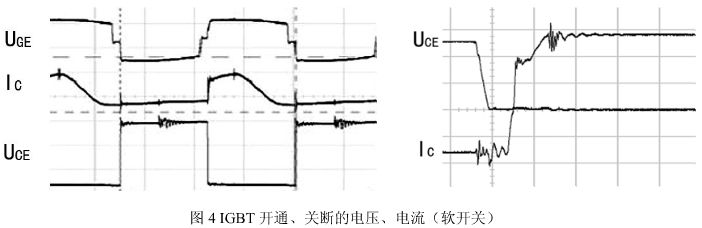 圖4 IGBT開通、關斷的電壓、電流(軟開關) 肖介光等:IGBT逆變焊機電磁騷擾的抑制 同時,由于主變壓器的漏感及分布電容在 IGBT 開通、關斷時,常常產(chǎn)生高頻高壓尖峰震蕩,由此而產(chǎn)生的高次諧波可由多種途徑傳入內部電路,也可通過散熱器及主變壓器等途經(jīng)向空間輻射。