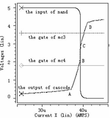 圖7 當(dāng)極限電流為40uA時電流極限比較器的特性