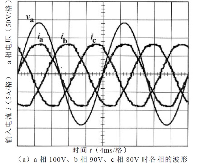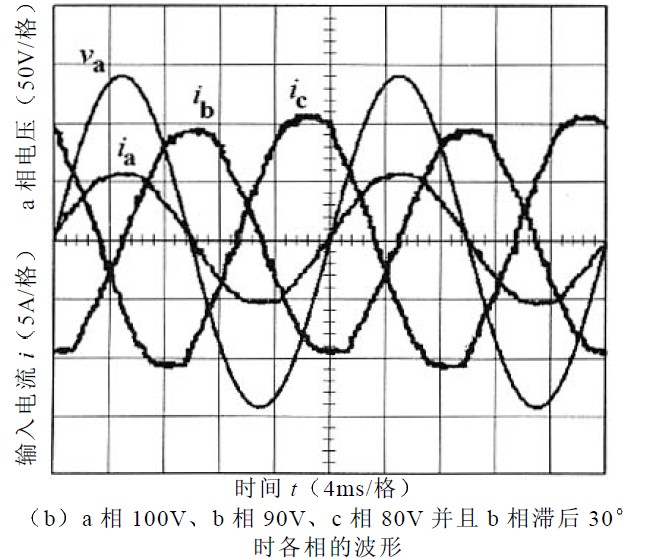 ③單位功率因數(shù)控制方法在輸入電壓不對稱時輸入電流會發(fā)生相移,實(shí)現(xiàn)不了單位功率因數(shù)。