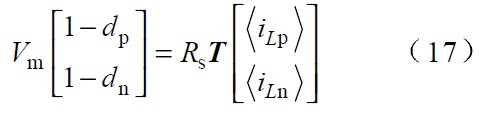 可以證明,式1 在任意區(qū)間的兩種開關(guān)順序都成立,并且只要電路工作在連續(xù)導(dǎo)通的模式,該等式即能準(zhǔn)確反映出穩(wěn)態(tài)電路的輸入電壓、輸出電壓和占空比三者之間的固定關(guān)系,與所采用的控制方案無關(guān)。因此式1 即為該整流器的狀態(tài)方程。