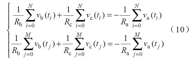 由于電網(wǎng)電壓可能存在各種干擾,為使計(jì)算結(jié)果盡可能精確,可將一個或幾個周期內(nèi)的n 個采樣電壓分為多組,取其中的兩組來計(jì)算相電壓不對稱系數(shù)。對式(9) 按該兩組相加,可得: