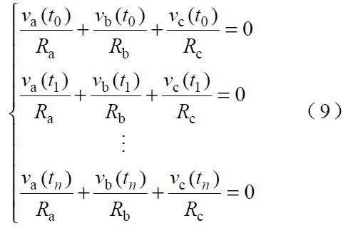 三相輸入電壓不對稱時,假設(shè)各相電流跟蹤各自的相電壓此,時可令從輸入端看進(jìn)去各相對中線的等效電阻為Ra ,Rb 和Rc 。因系統(tǒng)采用三相三線制在任意時刻均有: