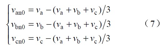 即 van0, vbn0 和vcn0 分別為各相電壓不含零序電壓的部分。由式(6) 和式(7 )可知,各相電流仍能保持低電流畸變。但若(va+vb+vc)/3≠0, 輸入電流和輸入電壓會存在一個相位差,從而導(dǎo)致系統(tǒng)不能實(shí)現(xiàn)單位功率因數(shù)。為使系統(tǒng)仍能實(shí)現(xiàn)單位功率因數(shù)的目標(biāo),必須改進(jìn)系統(tǒng)的控制策略。