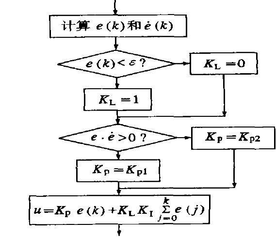 為此,要求KI 在誤差大時(shí)為零,以消除積分飽和現(xiàn)象;進(jìn)入穩(wěn)態(tài)區(qū)域時(shí),加入積分調(diào)節(jié)。這樣既保證穩(wěn)態(tài)時(shí)對(duì)積分的要求,又避免了積分飽和現(xiàn)象。