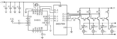 Si4313 的RX 端口經(jīng)電容C1與天線相連, 接收遙控調(diào)制載波信號。Si4313 與單片機之間的通信是通過SPI 總線實現(xiàn),SPI 總線讀寫操作由以下幾部分組成:讀寫標(biāo)志(1 bit),地址(7 bits)和數(shù)據(jù)(8 bits)。讀寫標(biāo)志位指示當(dāng)前操作是讀還是寫;7 位地址指示操作對象, 可尋址128 個8 位控制寄存器中的任意一個; 數(shù)據(jù)域包含寫入或讀出的Si4313 內(nèi)部寄存器的內(nèi)容。Si4313 的SCLK、SDI、SDO、nSEL、nIRQ 端口分別與單片機的P0.0~P0.4 端口相連。SCLK 為時鐘接口;SDI為串行數(shù)據(jù)寫入端口, 由單片機對Si4313 進行數(shù)據(jù)寫入;SDO 為串行數(shù)據(jù)輸出端口,解調(diào)后數(shù)字信號由此端口輸出至單片機。單片機P1.0~P1.3 為控制端口,與開關(guān)電路相連。