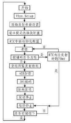無線電發(fā)射系統(tǒng)的軟件設(shè)計主要通過C2 接口編程實現(xiàn)Si4010 內(nèi)部集成的8051MCU 對無線發(fā)射電路的狀態(tài)進行控制。包括芯片初始化程序,鍵盤掃描及讀取程序,射頻參數(shù)設(shè)置程序,無線發(fā)射程序等。發(fā)射系統(tǒng)軟件流程如圖4 所示。
