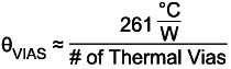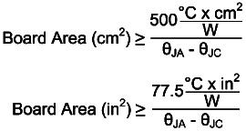 所需的PCB板面積近似值未考慮到散熱孔所發(fā)揮的作用,這些散熱孔將熱量從頂部金屬層(封裝連接至PCB)向底部金屬層傳遞。底層用作第二表面層,對(duì)流可以從這里將板上的熱量傳送出去。為了使板面積近似值有效,需使用至少8~10個(gè)散熱孔。散熱孔的熱阻近似于下列方程式值。