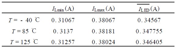 表2 Vin = 12V 情況下三種環(huán)境溫度下的驅(qū)動(dòng)電流