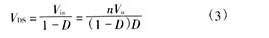 3)據(jù)式(27)、(28)求出變壓器匝比n和最大、最小占空比dmax、dmin,及正常占空比dnorm。