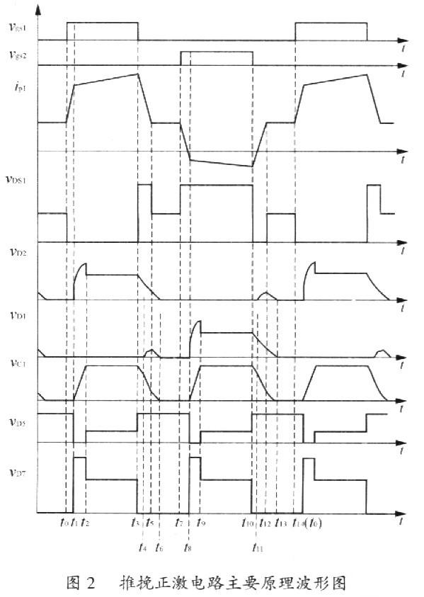 圖2為加無(wú)損緩沖吸收的PPF電路工作原理波形圖,一共分為14個(gè)工作模態(tài)。