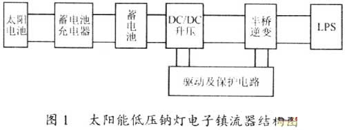 太陽能低壓鈉燈電子鎮(zhèn)流器是由太陽電池陣列來供電,由于太陽電池陣列具有非線性的電源特性,為保證陣列在任何日照和環(huán)境溫度下都將提供相應(yīng)可能的最大功率輸出,因此,要求鎮(zhèn)流器白天能自動(dòng)跟蹤最大功率點(diǎn)給蓄電池充電,晚上經(jīng)光控元件檢測(cè)太陽電池電壓和定時(shí)器件來決定是否自動(dòng)點(diǎn)亮低壓鈉燈。