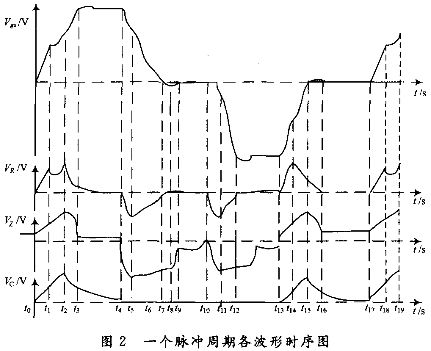 此電路具體工作過程分析如下:圖2是一個(gè)脈沖周期,當(dāng)正脈沖上升沿(t0~t3)到來(lái)時(shí)(這里只考慮正脈沖),電容C相當(dāng)于短路,通過二極管D和電容C可以給IGBT提供很大的瞬間電流,把驅(qū)動(dòng)脈沖的上升時(shí)間縮短。圖2中正脈沖就是IGBT的驅(qū)動(dòng)信號(hào),這個(gè)負(fù)脈沖的上升沿又是由另外一路驅(qū)動(dòng)脈沖感應(yīng)過來(lái)的,所以所要討論的就是另一路驅(qū)動(dòng)脈沖的下降沿尖峰,這四路輸出脈沖是一樣的,所以只要討論一路。但是為了直觀、完整,這里就把它看作是本路負(fù)脈沖的上升沿來(lái)討論(下面提到的負(fù)脈沖都是這種情況)。當(dāng)然穩(wěn)壓管這條支路也有電流流過,但是與加速電容C這條支路相比就很小。若不加電阻R,這個(gè)電容會(huì)經(jīng)過幾個(gè)脈沖周期充滿電荷,而失去加速作用,所以要求電容C的電荷在每個(gè)周期上升沿到來(lái)時(shí),電容上無(wú)存儲(chǔ)電荷。因此在電容上并聯(lián)一小阻值的電阻,給電容提供放電回路。在脈沖平頂期(t3~t4)時(shí),IGBT的輸入門極電容已經(jīng)充滿,門極保持高電平,此時(shí)IGBT的G-E之間相當(dāng)于斷開,變壓器次邊保持高電平。當(dāng)脈沖下降沿(t4~t9)到來(lái)時(shí),IGBT的輸入電容在這段時(shí)間反向放電,需緩關(guān),如果放電速度太快會(huì)引起極大的關(guān)斷尖峰,因此需阻斷通過加速電容加速放電,故在加速電容前面串聯(lián)一個(gè)快恢復(fù)二極管,使其只通過穩(wěn)壓管放電。穩(wěn)壓管可以很好地吸收其尖峰,并可以控制其下降沿的陡度。