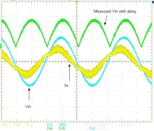 我們知道,PFC電流控制環(huán)路不斷嘗試強制電流與其參考匹配。該參考基本上是AC電壓信號,只是大小不同。因此,如果我們能夠延遲電壓檢測信號,并將延遲后的電壓信號用于電流參考生成,便可以讓電流延遲,來匹配AC電壓信號,從而使PF得到改善。這對一個模擬控制器來說比較困難,但對數(shù)字控制而言,只需幾行代碼便可以實現(xiàn)。
