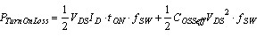 在這一公式中,ID 為剛導通后的漏電流, VDS 為開關(guān)上的電壓, COSSeff 為等效輸出電容值(包括雜散電容效應),tON 為導通時間,fSW 為開關(guān)頻率。.