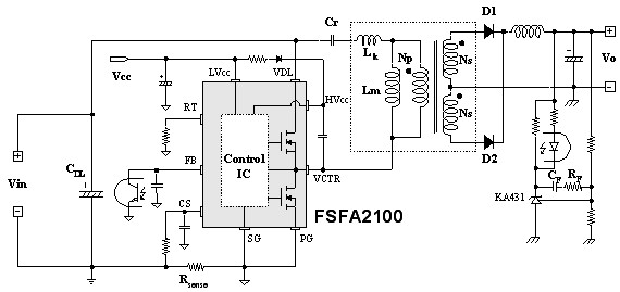 圖3:基于FSFA2100的非對稱半橋轉(zhuǎn)換器