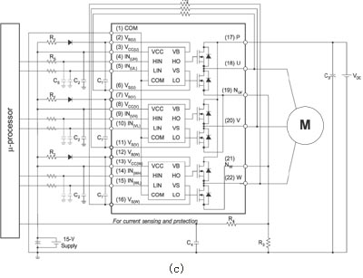 這里,IQBS為HVIC的待機(jī)電流,并忽略了CBS本身的漏電流。假設(shè)最大待機(jī)電流為100mA,CBS為1mF,那么,自舉電壓在5ms內(nèi)的變化 芕BS也只有0.5V。這意味著,采用1mF的陶瓷電容就足以維持這種MOSFET逆變器在整個運(yùn)行過程中所需的自舉電壓。