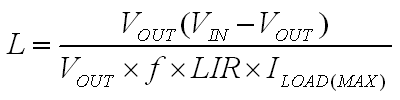 其中,VIN為輸入電壓,VOUT為輸出電壓,f為轉(zhuǎn)換器的開關(guān)頻率,LIR為電感紋波電流與設(shè)計的最大負(fù)載電流之比,ILOAD(MAX)為最大負(fù)載電流。