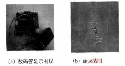 發(fā)現(xiàn)涂層有明顯的裂痕,數(shù)碼管的第二個(gè)數(shù)字“2”顯示有問題,如圖3 所示。