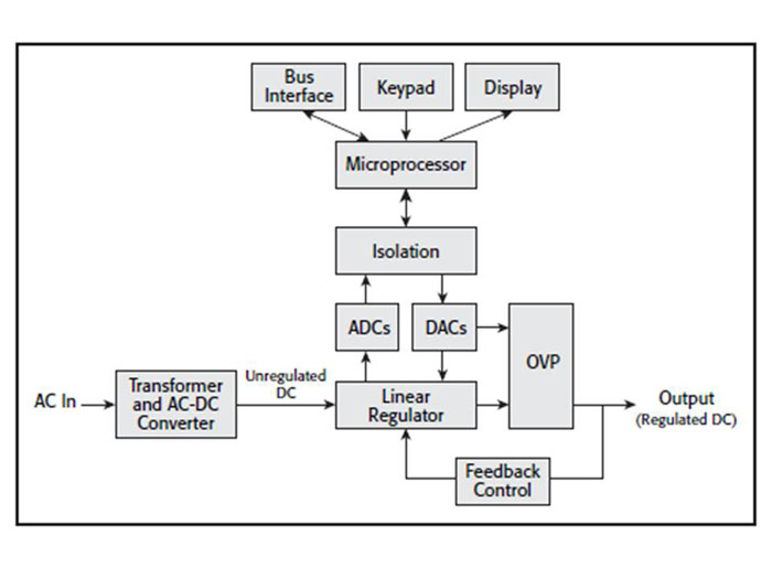 歷史上,直流電源用戶使用電位計(jì)設(shè)置輸出電壓或電流。今天,微處理器從用戶接口或遠(yuǎn)端接口接收輸入。數(shù)模轉(zhuǎn)換器(DAC)接收數(shù)字設(shè)置,將其轉(zhuǎn)換為模擬值并用作模擬調(diào)節(jié)器的參考。設(shè)置分辨率和準(zhǔn)確度的值由轉(zhuǎn)換質(zhì)量和調(diào)節(jié)過程決定。
