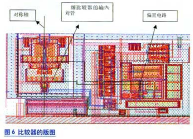 芯片采用了0.18μm的1P6MCMOS設(shè)計工藝,在實現(xiàn)高分辨率的同時也能獲得較高的速度,模擬結(jié)果表明,分辨率可以達到12bit。在版圖設(shè)計中,為了增強差分管的匹配性,管子和連線都采用全對稱的設(shè)計結(jié)構(gòu),版圖如圖6所示,面積為120μm×130μm。