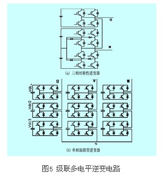 具有獨(dú)立直流電源的級(jí)聯(lián)型逆變器是將前述多個(gè)逆變單元串聯(lián)起來(lái),使逆變器輸出電壓的電平數(shù)增加,從而使得輸出波形的諧波含量減小,開(kāi)關(guān)所承受的電壓應(yīng)力減小。這種結(jié)構(gòu)的特點(diǎn)就是易于進(jìn)行模塊化設(shè)計(jì),擴(kuò)展容易;主要缺點(diǎn)是每個(gè)單元需要隔離的直流電源。