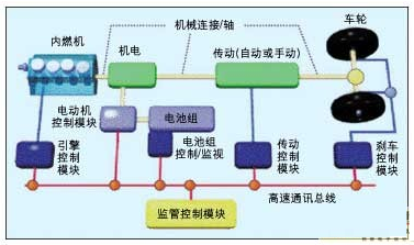 正如兩個圖中所示,要使混合型汽車良好工作需要使用許多嵌入式控制器。這些控制器都是相互連接的,通常采用高速的控制器局域網(wǎng)(CAN)總線來互連。這些控制器中的固件必須控制系統(tǒng)中各自的部分并同其它控制器實時協(xié)調(diào)。這要求設(shè)計和開發(fā)許多新的控制算法和軟件,甚至對發(fā)動機(jī)、傳輸和防抱死剎車系統(tǒng)(ABS)等成熟的控制系統(tǒng)也是如此。