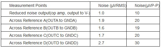 表2. 圖1電路使用MAX6143 2.5V電壓基準(zhǔn)源時(shí)所測(cè)得的噪聲電壓