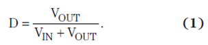 假設(shè) 100% 效率占空比 D,用于 CCM 運行的 ZETA 轉(zhuǎn)換器,其為:
