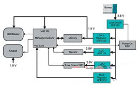 延長電池使用時間,除了優(yōu)化便攜式系統(tǒng)硬件效率以外,還必須優(yōu)化電源管理軟件。運行復(fù)雜的專用軟件需要使用高耗電量的高速微處理器。降低處理器速度可以降低功耗,延長電池運行時間,但軟件性能會下降。系統(tǒng)架構(gòu)師可以通過選擇最適合應(yīng)用的處理器速度來提高系統(tǒng)效率。便攜式系統(tǒng)還可以通過關(guān)斷子系統(tǒng)來達(dá)到省電的目的,如微處理器、顯示器背光、數(shù)據(jù)端口和處于測量間隙的傳感器,使用調(diào)節(jié)器的使能輸入或ADP190/ADP195等負(fù)載開關(guān)來隔離電池,如圖1所示?! ?br />