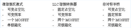 圖1:準(zhǔn)諧振、LLC和非對稱半橋拓?fù)涞谋容^