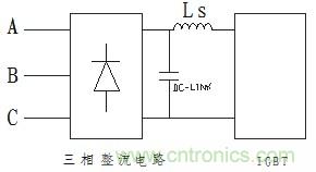 在此應(yīng)用場合中,可以視IGBT逆變器為整流電路的負(fù)載,此開關(guān)器件負(fù)載具有突變電流,而根據(jù)公式(1)可知