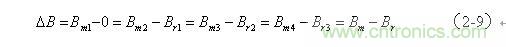 同理,當?shù)诙€直流脈沖加到變壓器初級線圈a、b兩端時,變壓器鐵芯中的磁感應強度B將按圖2-2中新的磁化曲線2-3上升,磁感應強度被磁場強度磁化到第二個最大值Bm2,使磁感應強度產(chǎn)生一個增量ΔB,  。