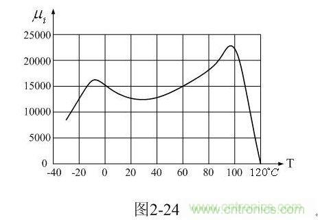 圖2-24是日本TDK公司高導(dǎo)磁率材料H5C4系列鐵芯初始導(dǎo)磁率 隨溫度變化的曲線圖。
