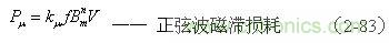 (2-83)式中, 為輸入電壓為正弦波時變壓器鐵芯的磁滯損耗[W]; 為與鐵磁物質有關的系數(shù)(由試驗決定);