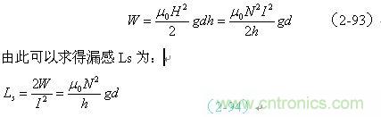 如果我們拿(2-94)式與(2-62)式或(2-89)式進(jìn)行對(duì)比,可以看出,線圈漏感與線圈的電感是沒(méi)有本質(zhì)區(qū)別的,只是磁路和磁感應(yīng)強(qiáng)度以及介質(zhì)導(dǎo)磁率等參數(shù)需要根據(jù)實(shí)際情況來(lái)決定。