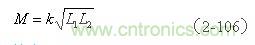 【說明】互感M有正負(fù),圖2-41-a和圖2-41-c的接法互感M為正,圖2-41-b和圖2-41-d的接法互感M為負(fù)。兩個(gè)線圈之間的互感M為: