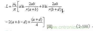 【說明】上式是用來計(jì)算變壓器線圈電感的計(jì)算公式。由于變壓器鐵芯的磁回路基本是封閉的,變壓器鐵芯的平均導(dǎo)磁率相對(duì)來說比較大。鐵芯的導(dǎo)磁率一般在產(chǎn)品技術(shù)手冊(cè)中都會(huì)給出,但由于大多數(shù)開關(guān)變壓器的鐵芯都留有氣隙,留有氣隙的磁回路會(huì)出現(xiàn)磁場(chǎng)強(qiáng)度以及磁感應(yīng)強(qiáng)度分布不均勻,因此,(2-103)式中的導(dǎo)磁率只能使用平均導(dǎo)磁率,技術(shù)手冊(cè)中的數(shù)據(jù)不能直接使用。