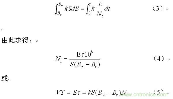 (5)式中, 就是開(kāi)關(guān)變壓器的伏秒容量,即:伏秒容量等于輸入脈沖電壓幅度與脈沖寬度的乘積,這里我們把伏秒容量用VT來(lái)表示。