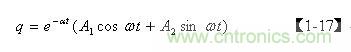 當(dāng)電源開關(guān)管Q1導(dǎo)通時,輸入電壓才開始對電容Cs充電,Cs電容兩端的電壓不可能被充滿電;因此,當(dāng) t = 0時,電容Cs兩端的電壓等于0,由此可知,【1-17】式中的A1=0 ,因此,【1-17】式可以改寫為: