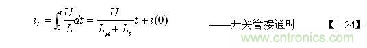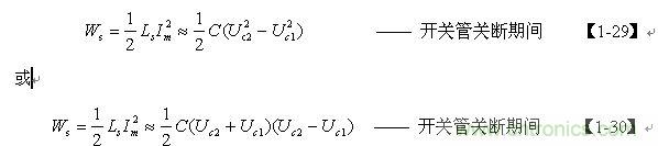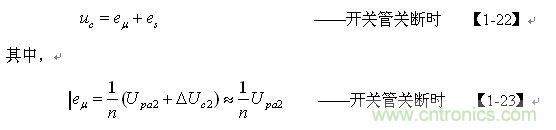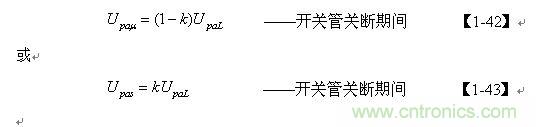【1-42】和【1-43】式中, k=Ls/L為漏感 Ls與開關(guān)變壓器初級(jí)線圈的電感L的比值。