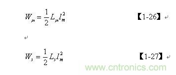由此求得開關(guān)變壓器初級(jí)線圈勵(lì)磁電感 Lu和漏感 Ls存儲(chǔ)的能量分別為: