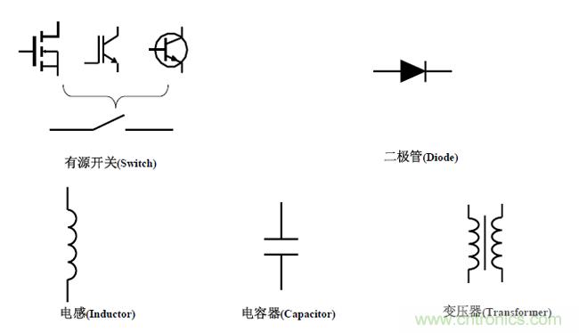 開關(guān)電源功率電路的五個基本元件:開關(guān),二極管,電容,電感,變壓器